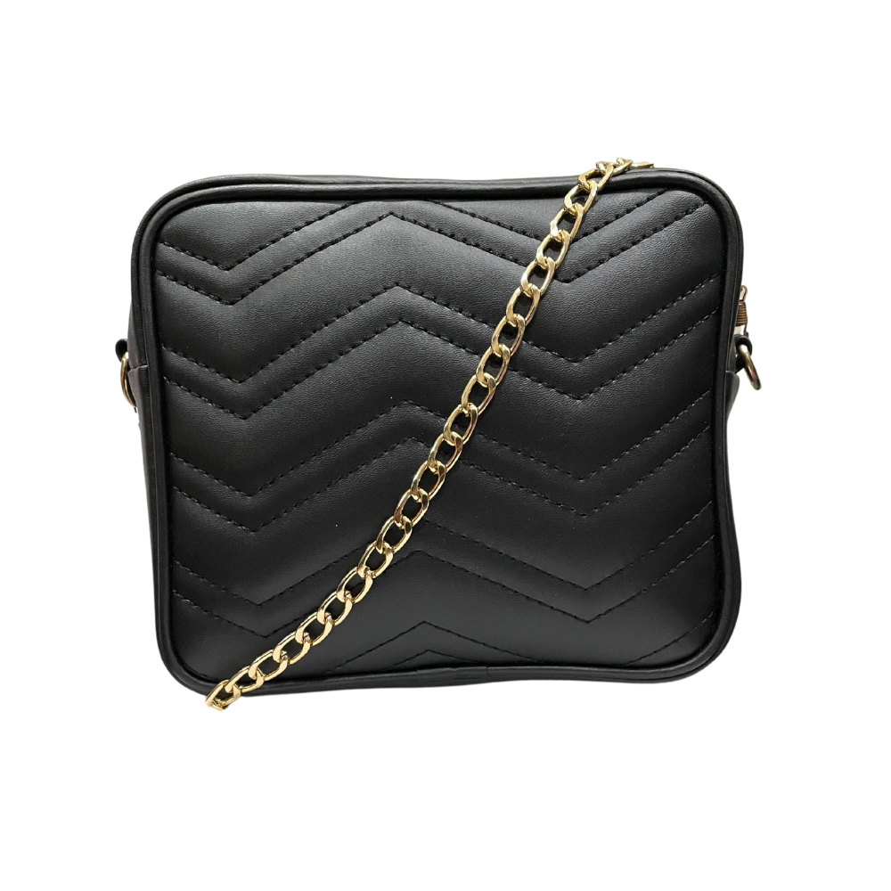 Crafted from premium vegan leather, the Noir Chic Crossbody is both durable and stylish, making it your ideal companion for daily wear or special occasions. The gold-tone chain strap adds a hint of glamour, allowing you to wear it effortlessly over the shoulder or crossbody for hands-free convenience.